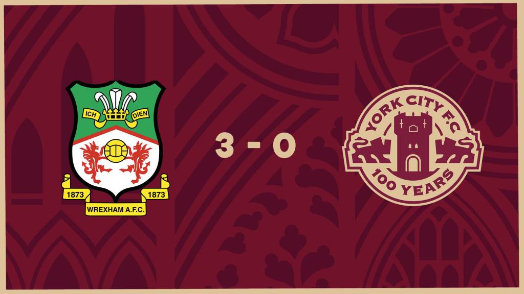 Two late Wrexham goals condemn York City to a 3-0 defeat who continue their fight for safety on Tuesday evening against Scunthorpe.